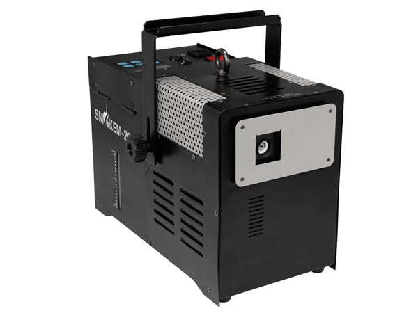con pantalla LCD para un ajuste rápido y fácil de las funciones DMX, la emisión de humo y el sensor de nivel de líquido