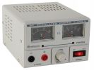 Visualización analógica de la tensión y de la corriente de salida modo de protección: límite de corriente conectores de salida: IEC1010 protegidas por fusible caja: de plástico color : blanco tensión de salida: 0-15V ajustable corriente de salida: 2A rizado: 2A regulación: 1% dimensiones: 150 x 110 x 240mm peso: 2.4kg